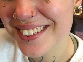 Tooth Gems are usually attached to real teeth,
