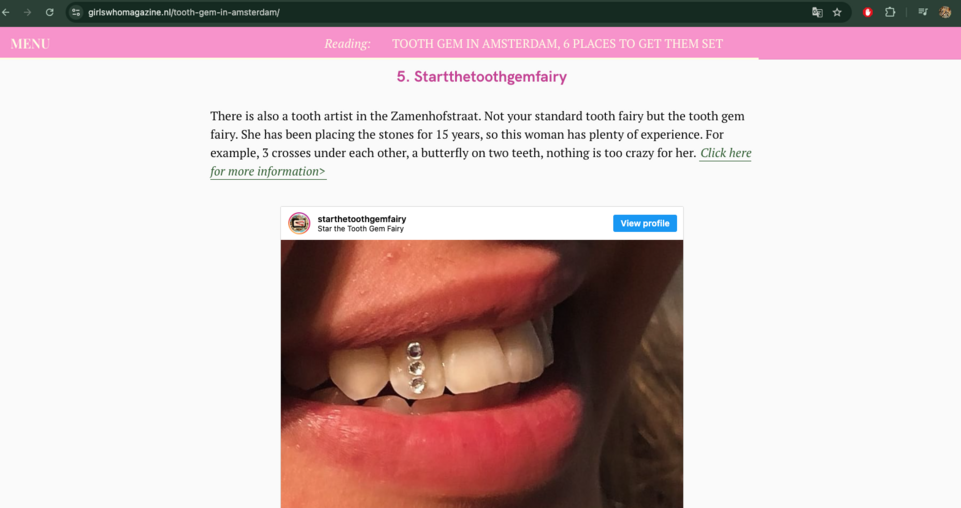 Tooth Jewelry by Star the Tooth Gem Fairy :: Tooth Crystals / Tooth Gems / Tooth Bling / Tand Kristal / tandkristal /tandkristallen / toothkristal /teeth gems / teethgems / tandsieraad / tandjuweel / tandjuweelje in Amsterdam / tooth gem amsterdam / toothgem amsterdam / tandkristal amsterdam